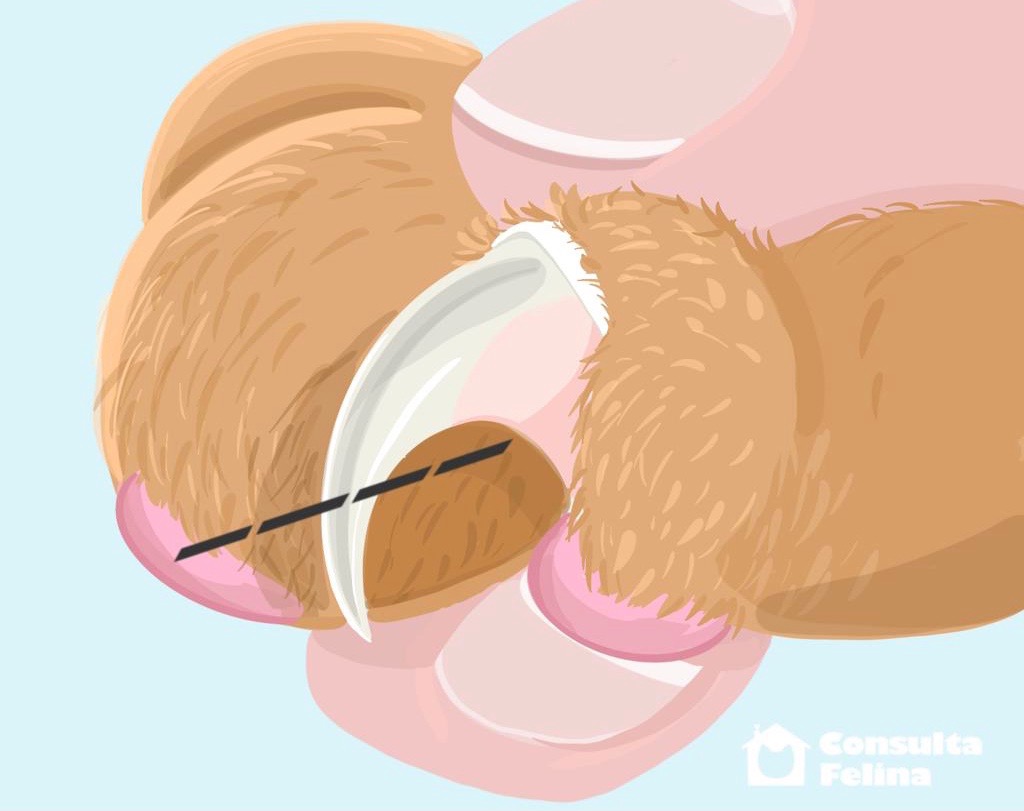 A la hora de cortarlas es muy importante que tengamos en cuenta la anatomía de la uña del gato, ya que está unida a la falange mediante la cresta ungueal. La uña presenta tres partes: la úngula o apófisis ungueal, que es la zona de color rosa por donde circulan pequeños vasos sanguíneos, por lo que si llegamos a esta puede sangrar; la zona intermedia de color blanco, que tiene cierto grado de sensibilidad pero menor que la anterior y la corteza externa, que es transparente. El corte se debe realizar en la corteza externa y es preferible cortar poco y más frecuentemente a pasarnos y hacerle daño al gato.